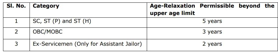 | Assistant Jailor | 21 Years | 40 Years | Born not before 01-01-1986 and not later than 01-01-2005 |